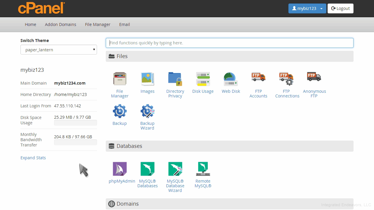 This demo assumes you've already logged in to cPanel, and are starting on the home screen.