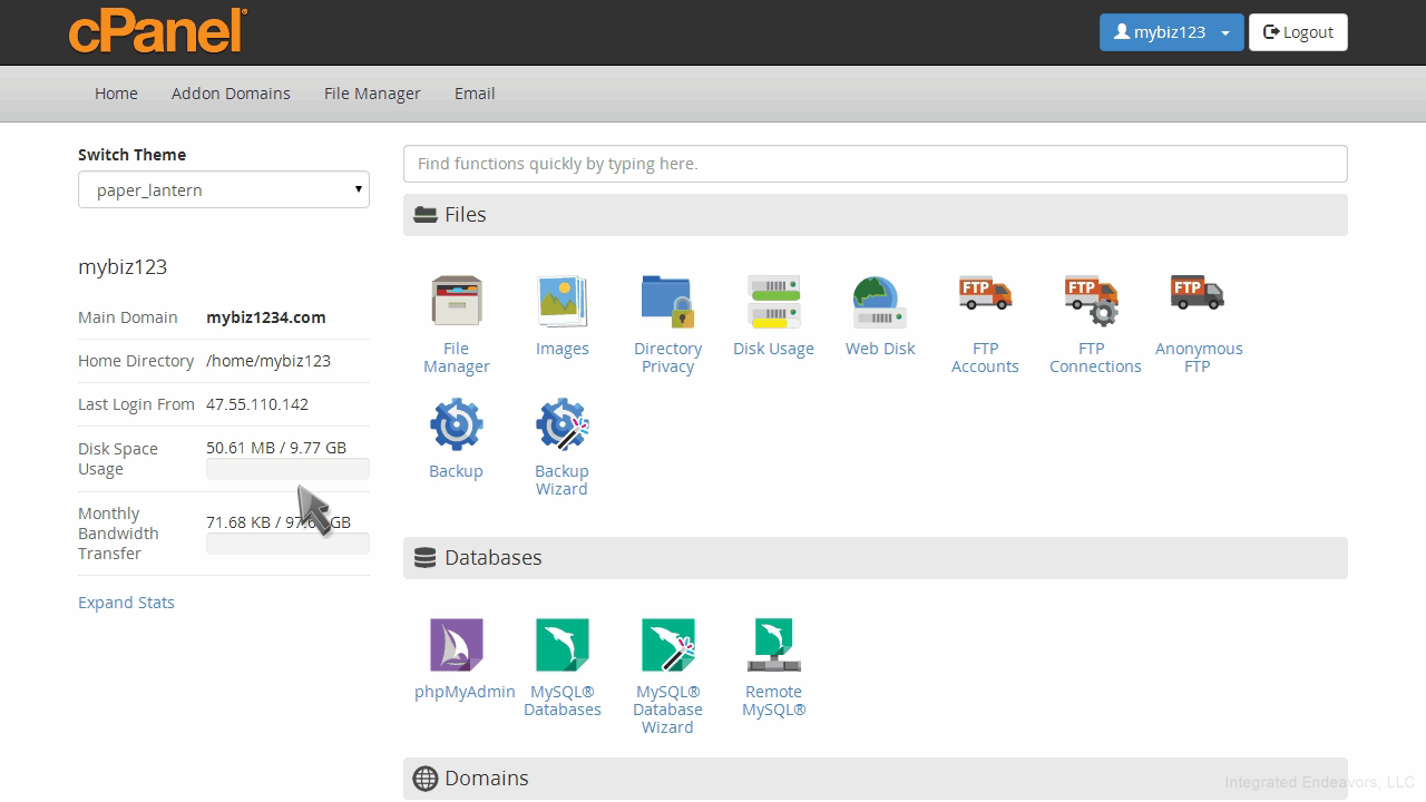 This demo assumes you've already logged in to cPanel, and are starting on the home screen.