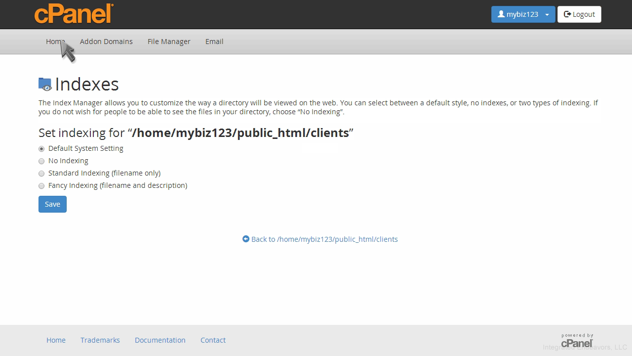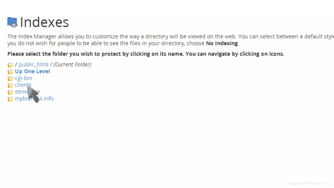 That's it! The index settings have been updated, and visitors can no longer view the contents of the clients directory.