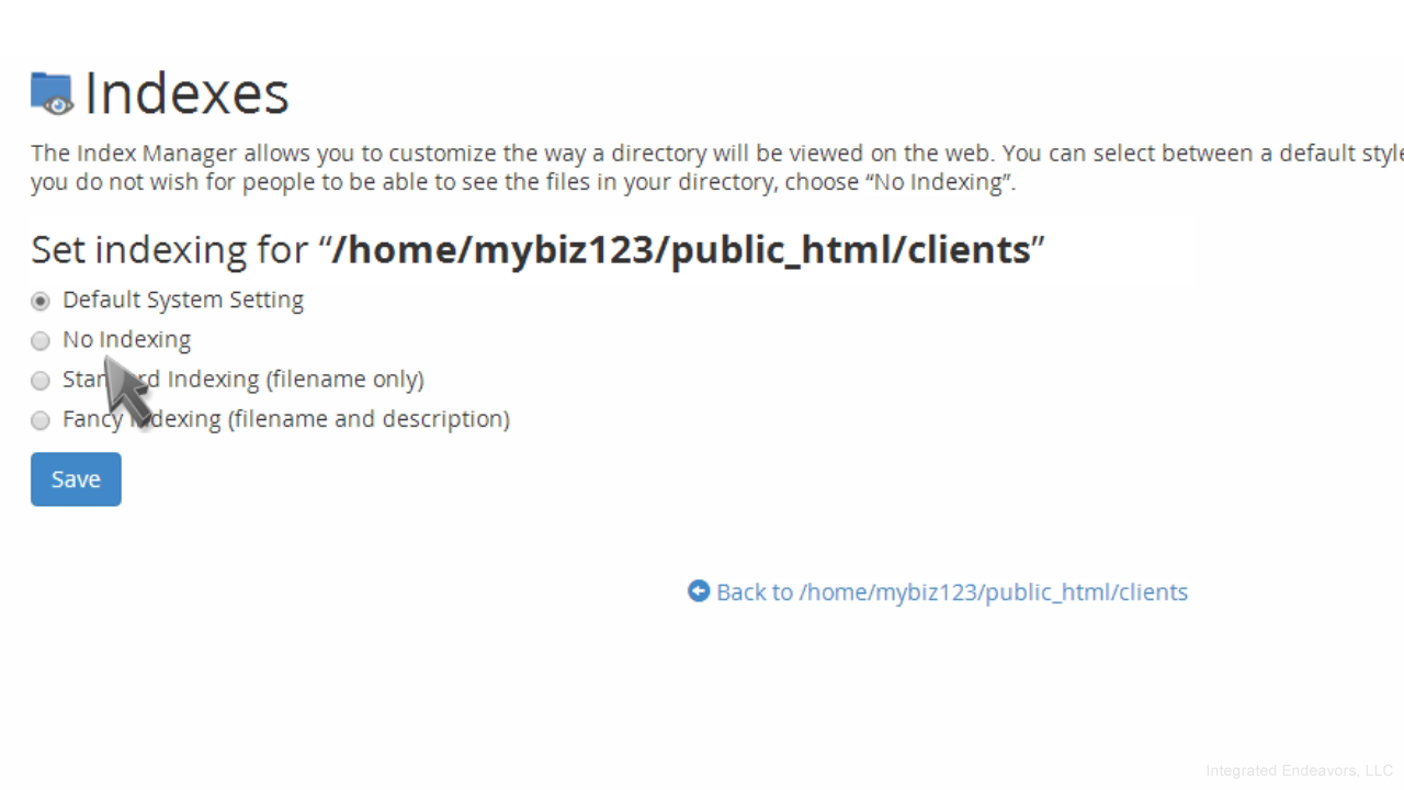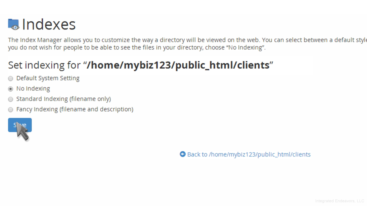 Since we do not want the contents of this directory shown, we'll choose the "No Indexing" option.