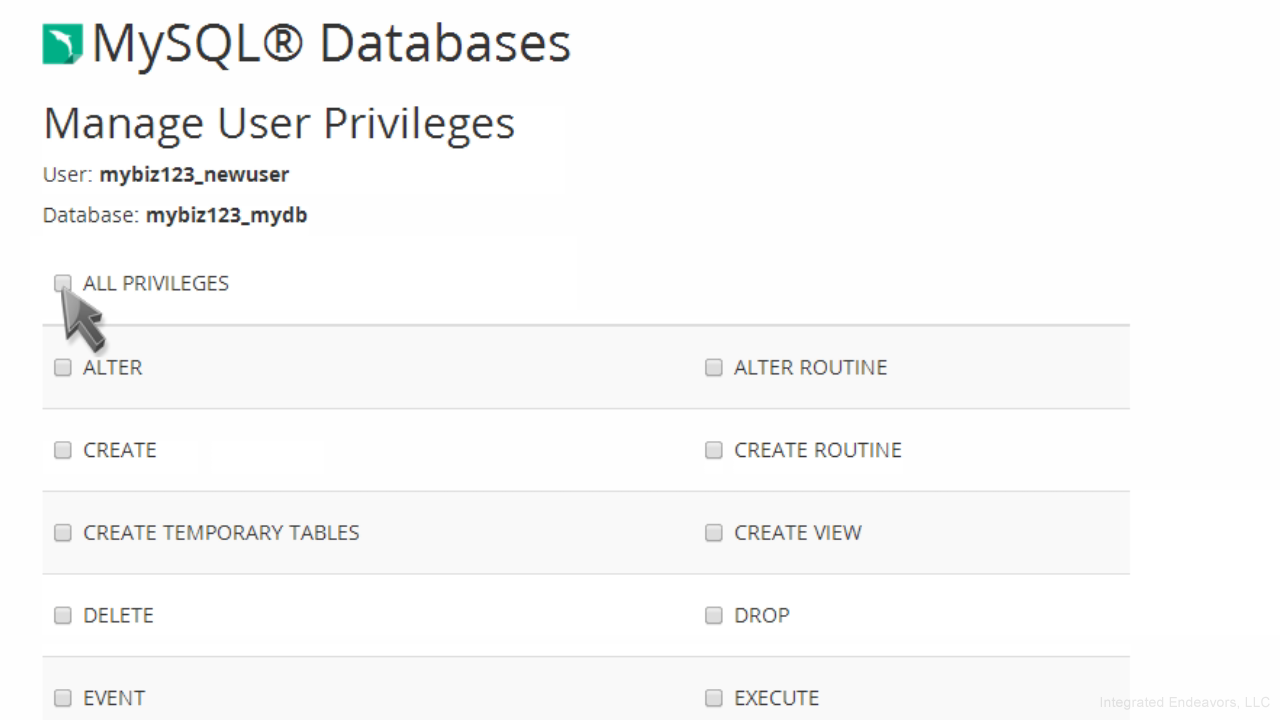 Select the privileges you want to grant the user... in this case, let's select "All Privileges".
