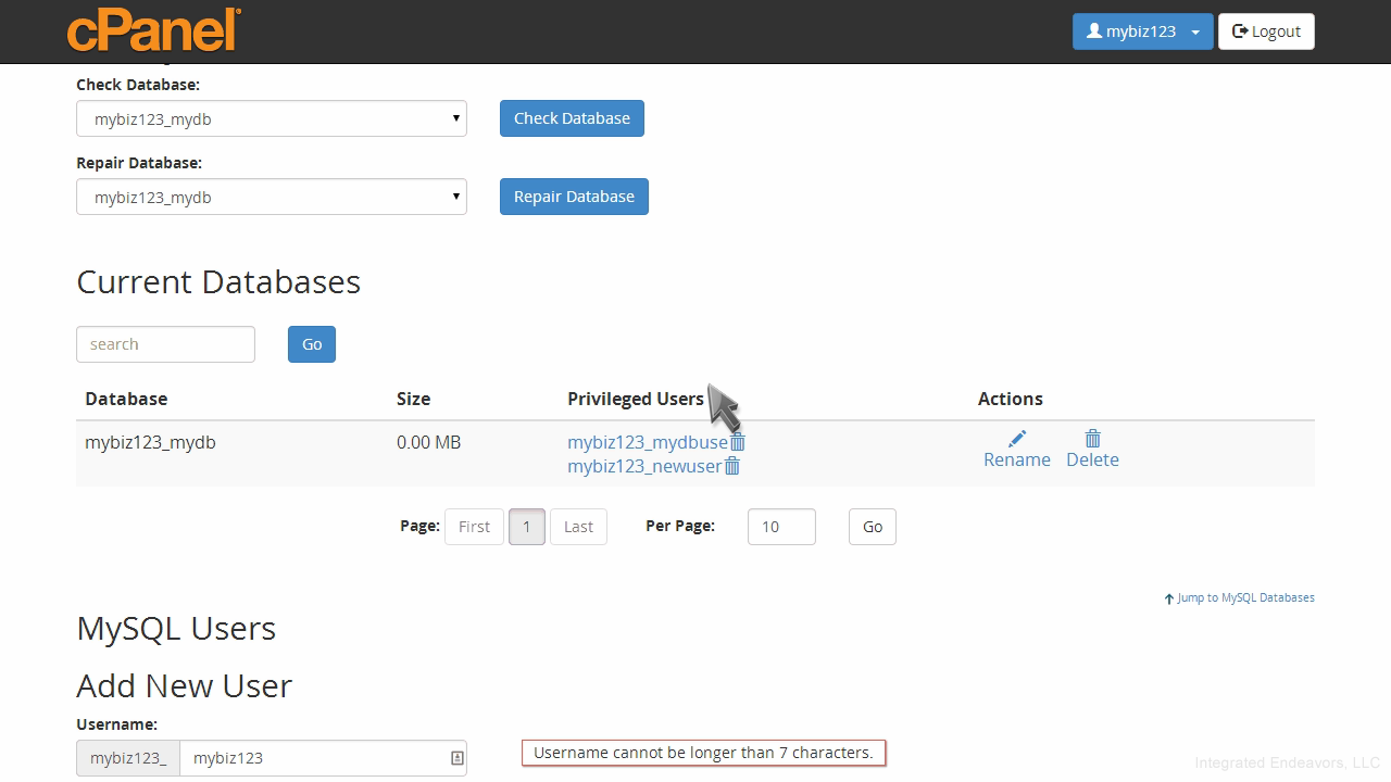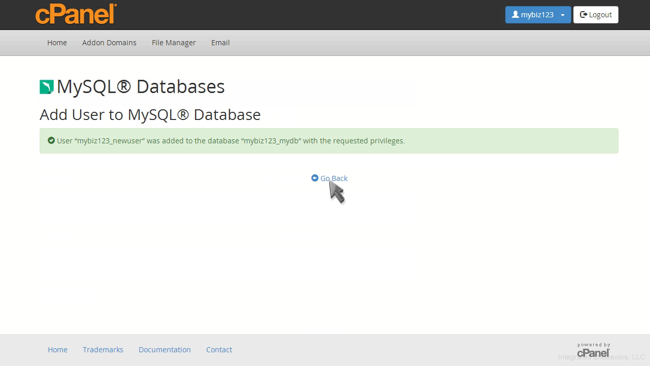 This is the end of the tutorial. You now know how to assign database users to databases in cPanel.